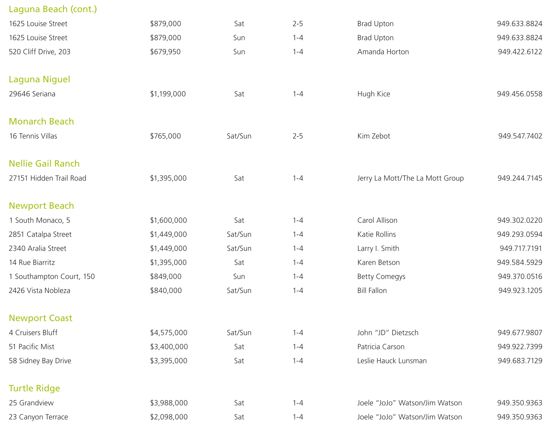25 Grandview $3,988,000 Sat 1-4 Joele “JoJo” Watson/Jim Watson 949.350.9363