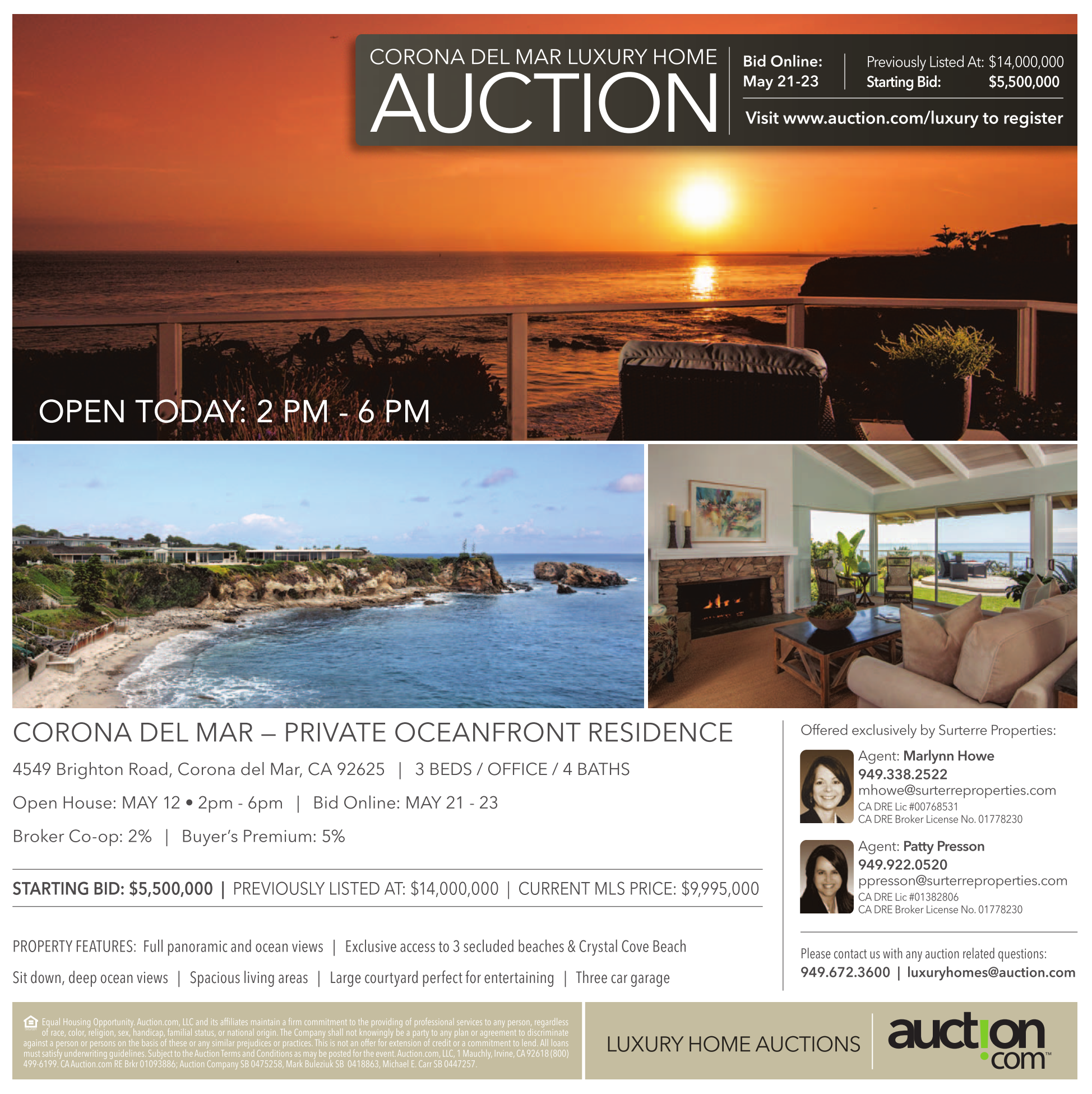 May 21-23 Starting Bid: $5,500,000 Visit www.auction.com/luxury to register