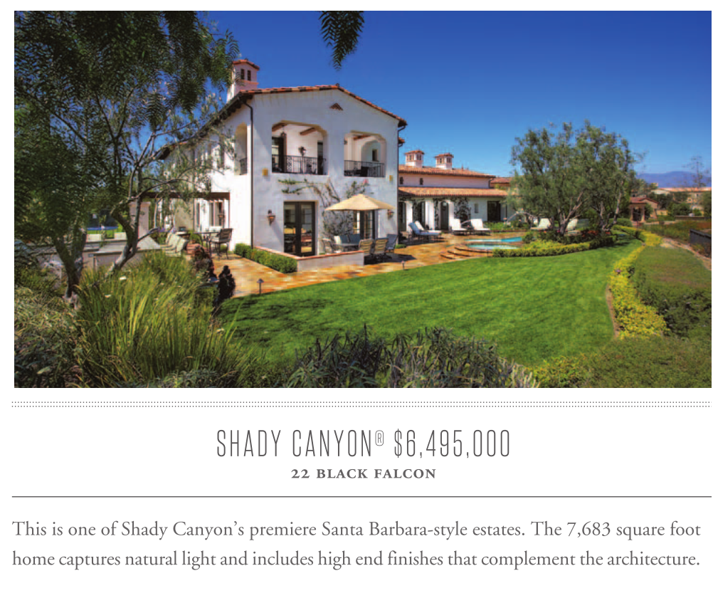 This is one of Shady Canyon’s premiere Santa Barbara-style estates. The 7,683 square foot home captures natural light and includes high end finishes that complement the architecture.