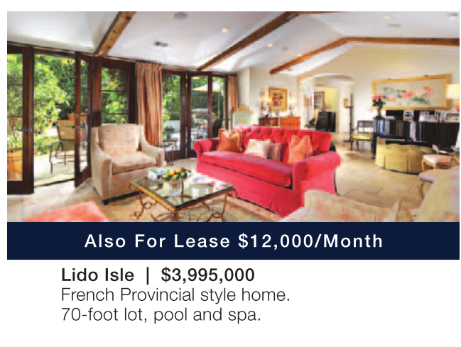 Lido Isle | $3,995,000 French Provincial style home. 70-foot lot, pool and spa.