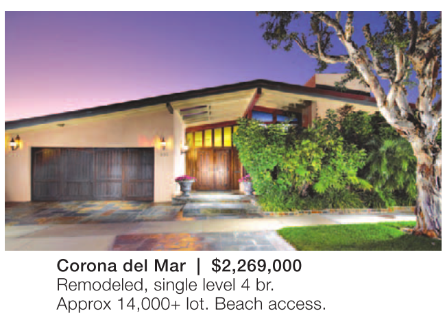 Corona del Mar | $2,269,000 Remodeled, single level 4 br. Approx 14,000+ lot. Beach access.