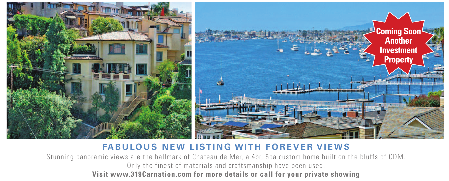 Stunning panoramic views are the hallmark of Chateau de Mer, a 4br, 5ba custom home built on the bluffs of CDM.
