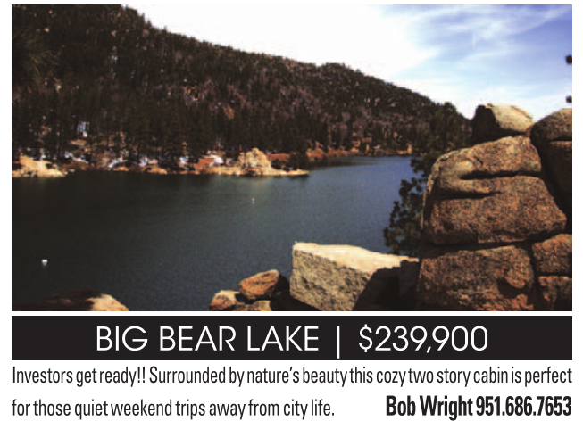 Investors get ready!! Surrounded by nature’s beauty this cozy two story cabin is perfect for those quiet weekend trips away from city life. Bob Wright 951.686.7653