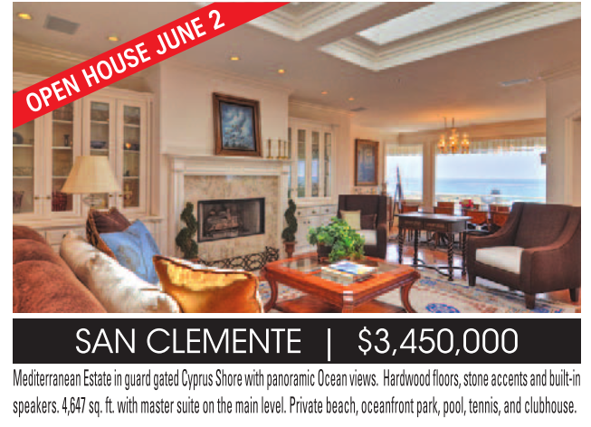 SAN CLEMENTE | $3,450,000 Mediterranean Estate in guard gated Cyprus Shore with panoramic Ocean views. Hardwood floors, stone accents and built-in speakers. 4,647 sq. ft. with master suite on the main level. Private beach, oceanfront park, pool, tennis, and clubhouse.