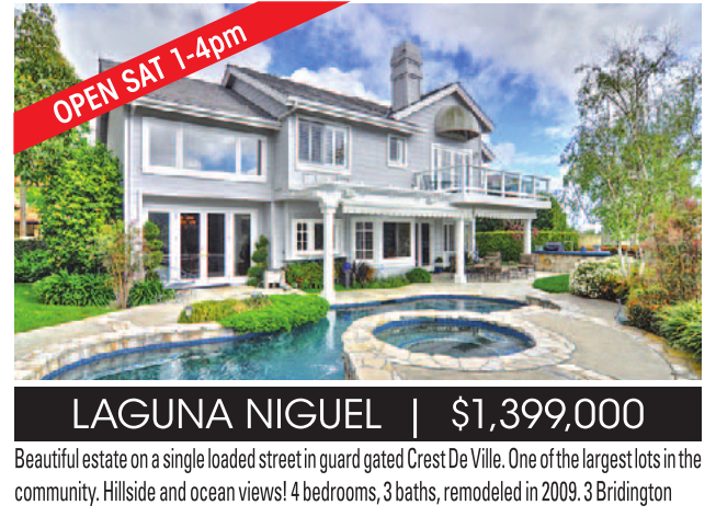 Beautiful estate on a single loaded street in guard gated Crest De Ville. One of the largest lots in the community. Hillside and ocean views! 4 bedrooms, 3 baths, remodeled in 2009. 3 Bridington