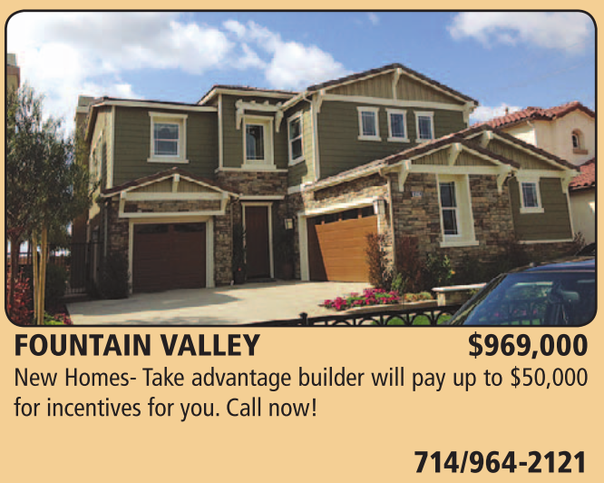 FOUNTAIN VALLEY $969,000 New Homes- Take advantage builder will pay up to $50,000 for incentives for you. Call now!