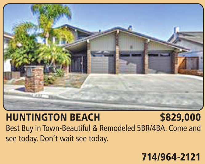 HUNTINGTON BEACH $829,000 Best Buy in Town-Beautiful & Remodeled 5BR/4BA. Come and see today. Don’t wait see today.