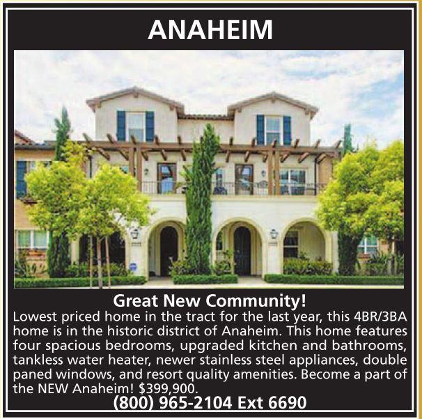 Lowest priced home in the tract for the last year, this 4BR/3BA home is in the historic district of Anaheim. This home features four spacious bedrooms, upgraded kitchen and bathrooms, tankless water heater, newer stainless steel appliances, double paned windows, and resort quality amenities. Become a part of the NEW Anaheim! $399,900.