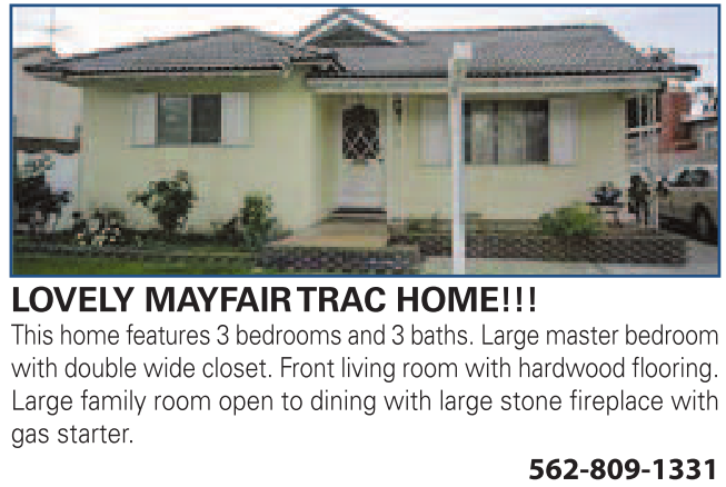 LOVELY MAYFAIR TRAC HOME!!! This home features 3 bedrooms and 3 baths. Large master bedroom with double wide closet. Front living room with hardwood flooring. Large family room open to dining with large stone fireplace with gas starter.