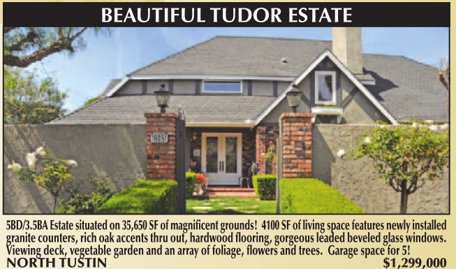 5BD/3.5BA Estate situated on 35,650 SF of magnificent grounds! 4100 SF of living space features newly installed granite counters, rich oak accents thru out, hardwood flooring, gorgeous leaded beveled glass windows. Viewing deck, vegetable garden and an array of foliage, flowers and trees. Garage space for 5! NORTH TUSTIN $1,299,000