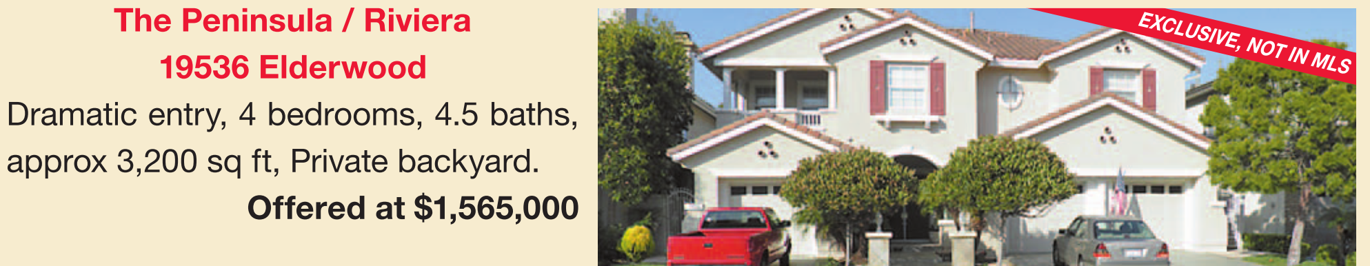 The Peninsula / Riviera 19536 Elderwood Dramatic entry, 4 bedrooms, 4.5 baths, approx 3,200 sq ft, Private backyard.