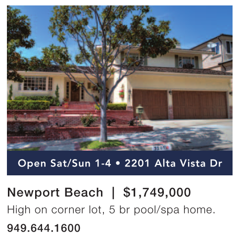 Newport Beach | $1,749,000 High on corner lot, 5 br pool/spa home. 949.644.1600