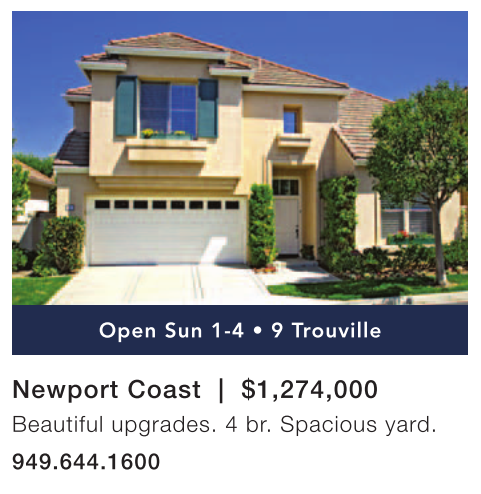 Newport Coast | $1,274,000 Beautiful upgrades. 4 br. Spacious yard. 949.644.1600