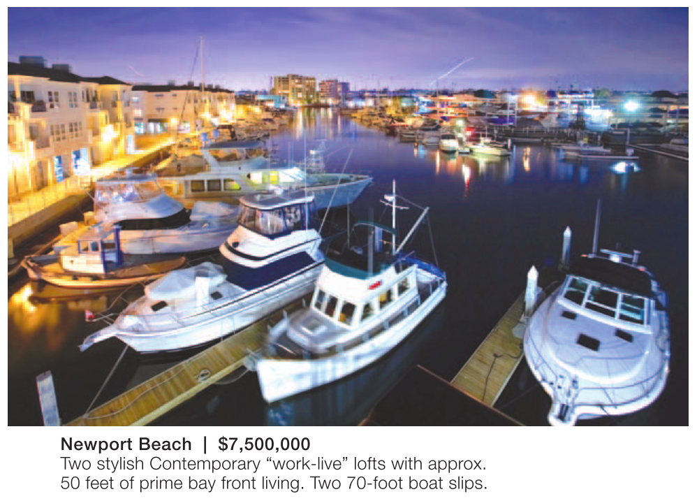 Newport Beach | $7,500,000 Two stylish Contemporary “work-live” lofts with approx. 50 feet of prime bay front living. Two 70-foot boat slips.