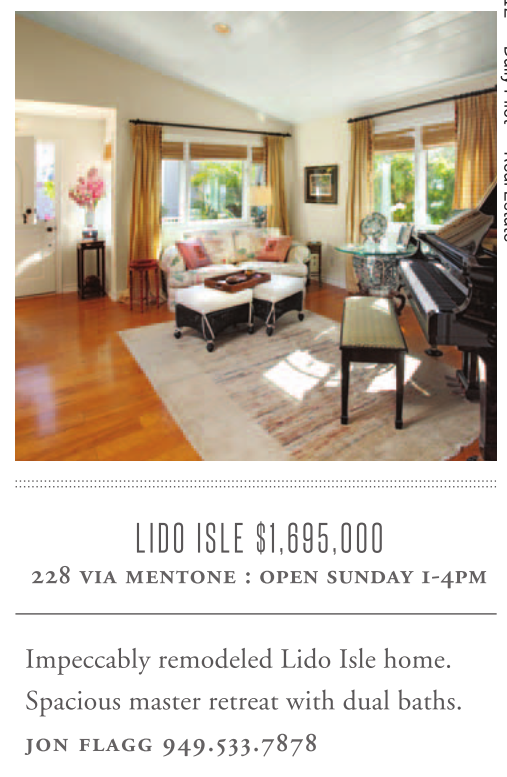 Impeccably remodeled Lido Isle home. Spacious master retreat with dual baths. jon flagg 949.533.7878