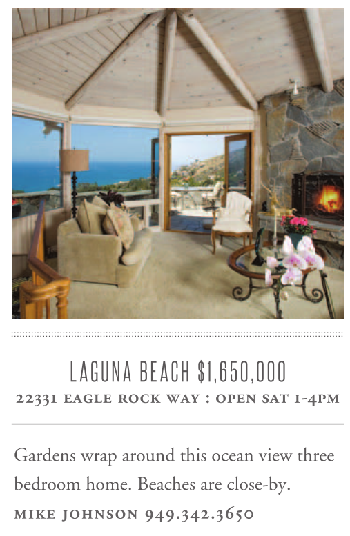 Gardens wrap around this ocean view three bedroom home. Beaches are close-by. mike johnson 949.342.3650
