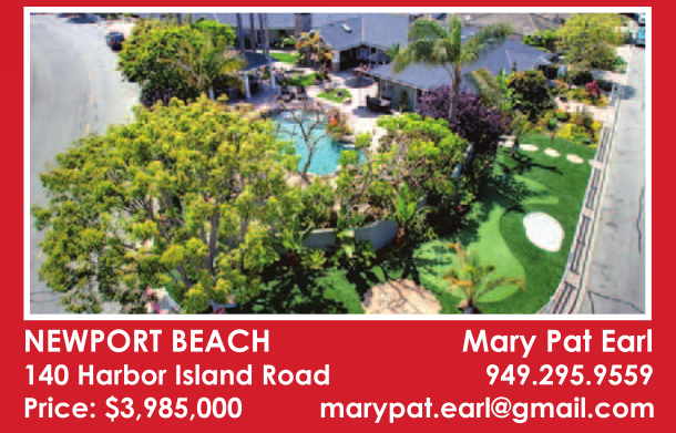 NEWPORT BEACH Mary Pat Earl 140 Harbor Island Road 949.295.9559 Price: $3,985,000 marypat.earl@gmail.com