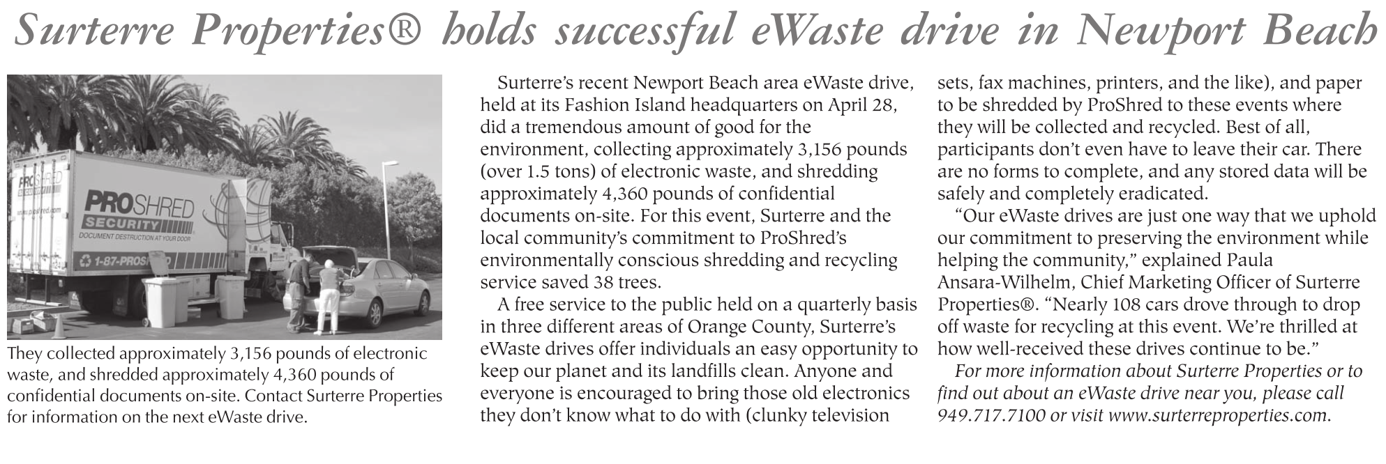 For more information about Surterre Properties or to find out about an eWaste drive near you, please call 949.717.7100 or visit www.surterreproperties.com.