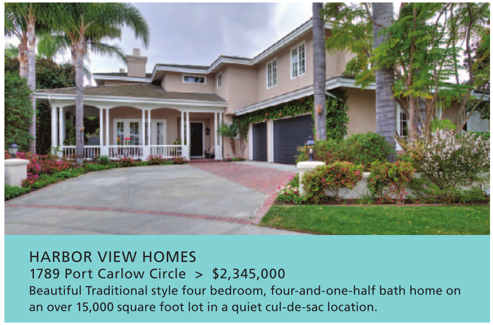 HARBOR VIEW HOMES 1789 Port Carlow Circle > $2,345,000 Beautiful Traditional style four bedroom, four-and-one-half bath home on an over 15,000 square foot lot in a quiet cul-de-sac location.
