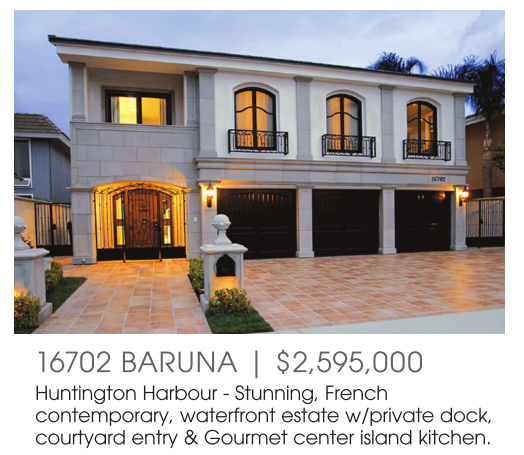 Huntington Harbour - Stunning, French contemporary, waterfront estate w/private dock, courtyard entry & Gourmet center island kitchen.