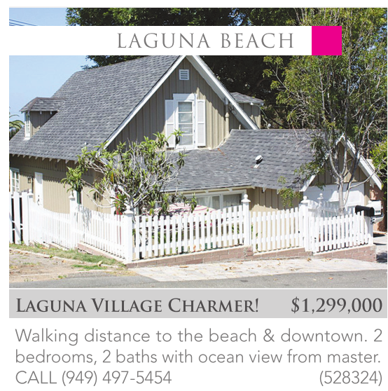 Laguna Village Charmer! $1,299,000 Walking distance to the beach & downtown. 2 bedrooms, 2 baths with ocean view from master. CALL (949) 497-5454 (528324)