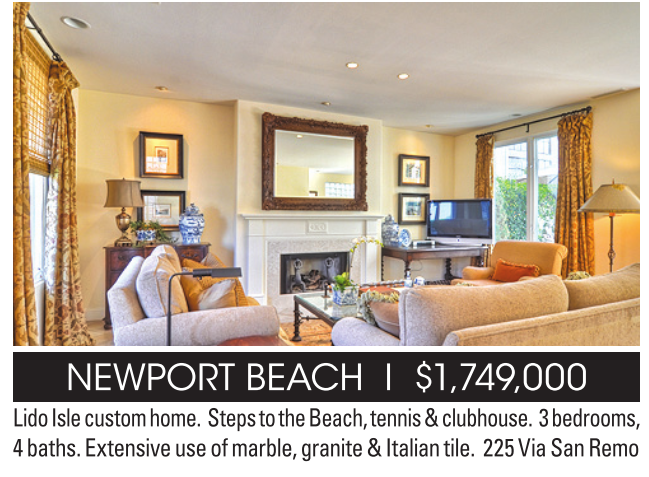 Lido Isle custom home. Steps to the Beach, tennis & clubhouse. 3 bedrooms, 4 baths. Extensive use of marble, granite & Italian tile. 225 Via San Remo