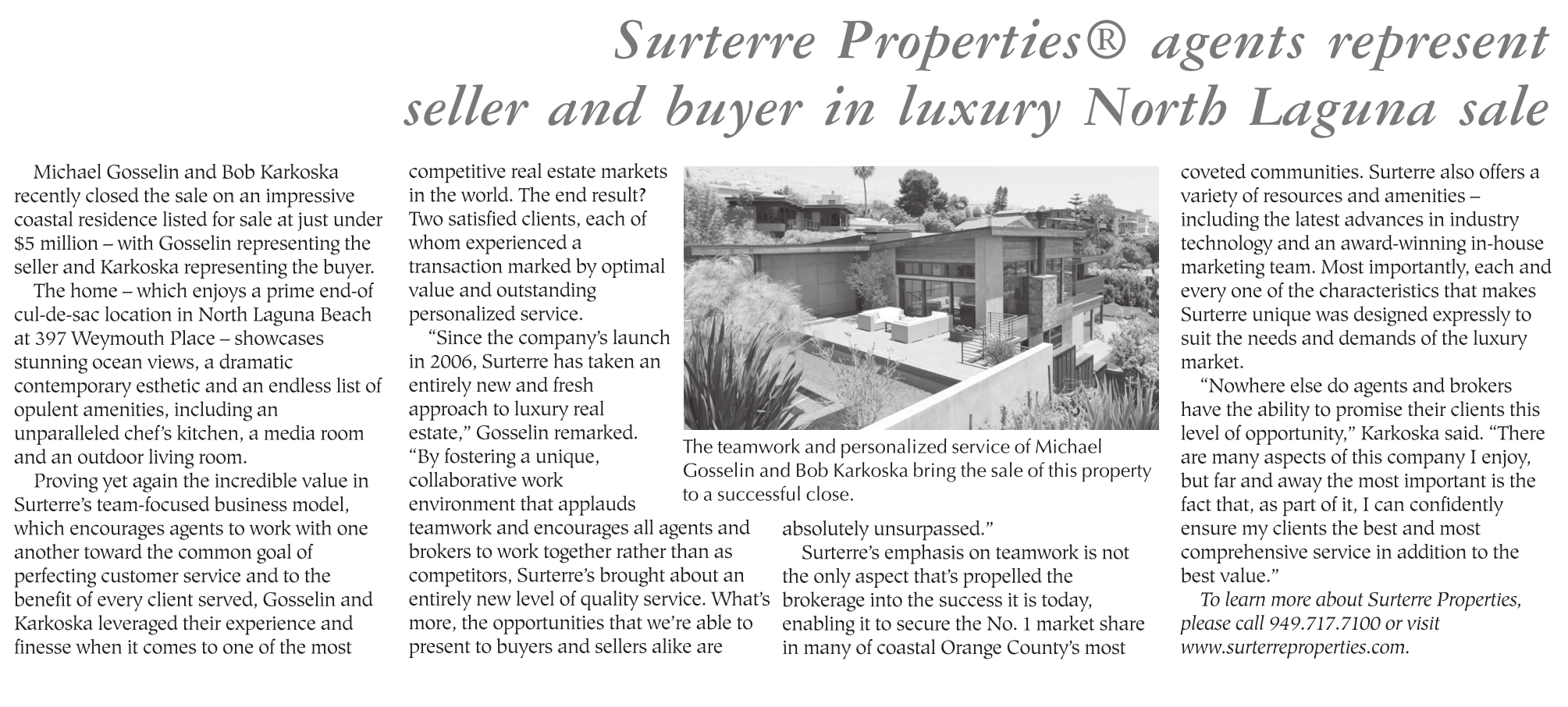 Surterre Properties® agents represent seller and buyer in luxury North Laguna sale