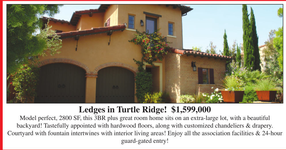 Ledges in Turtle Ridge! $1,599,000 Model perfect, 2800 SF, this 3BR plus great room home sits on an extra-large lot, with a beautiful backyard! Tastefully appointed with hardwood floors, along with customized chandeliers & drapery. Courtyard with fountain intertwines with interior living areas! Enjoy all the association facilities & 24-hour guard-gated entry!