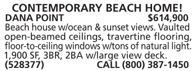 Beach house w/ocean & sunset views. Vaulted open-beamed ceilings, travertine flooring,