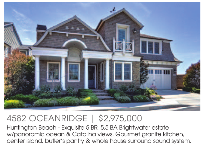 Huntington Beach - Exquisite 5 BR, 5.5 BA Brightwater estate w/panoramic ocean & Catalina views. Gourmet granite kitchen, center island, butler’s pantry & whole house surround sound system.