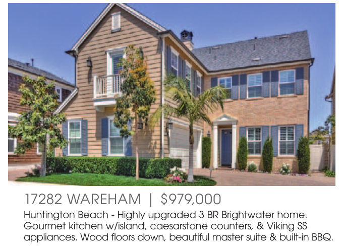 Huntington Beach - Highly upgraded 3 BR Brightwater home. Gourmet kitchen w/island, caesarstone counters, & Viking SS appliances. Wood floors down, beautiful master suite & built-in BBQ.