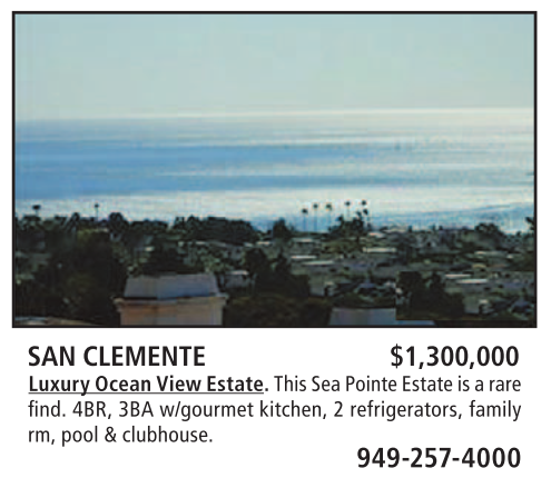 SAN CLEMENTE $1,300,000 Luxury Ocean View Estate. This Sea Pointe Estate is a rare find. 4BR, 3BA w/gourmet kitchen, 2 refrigerators, family rm, pool & clubhouse.