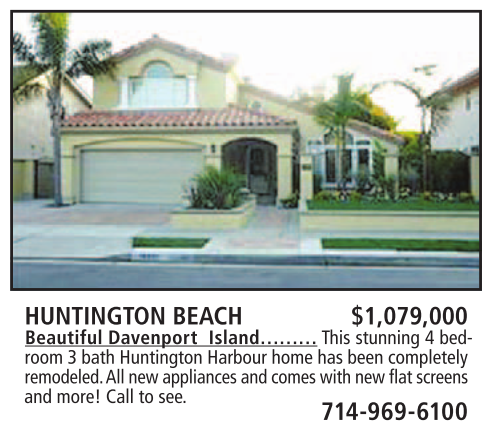 HUNTINGTON BEACH $1,079,000 Beautiful Davenport Island……… This stunning 4 bedroom 3 bath Huntington Harbour home has been completely remodeled.All new appliances and comes with new flat screens and more! Call to see. 714-969-6100