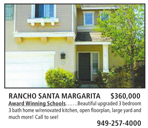 RANCHO SANTA MARGARITA $360,000 Award Winning Schools…….Beautiful upgraded 3 bedroom