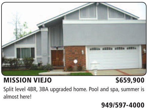 MISSION VIEJO $659,900 Split level 4BR, 3BA upgraded home. Pool and spa, summer is almost here!