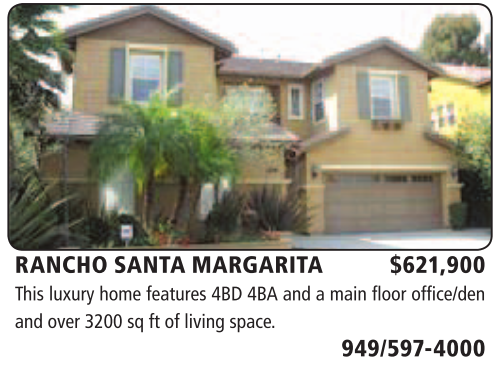 RANCHO SANTA MARGARITA $621,900 This luxury home features 4BD 4BA and a main floor office/den and over 3200 sq ft of living space.
