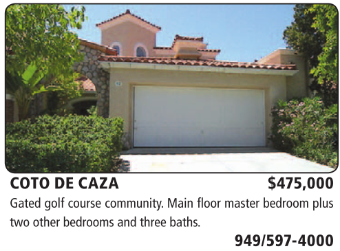 COTO DE CAZA $475,000 Gated golf course community. Main floor master bedroom plus two other bedrooms and three baths.