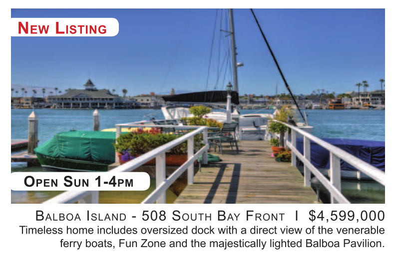 BALBOA ISLAND - 508 SOUTH BAY FRONT I $4,599,000 Timeless home includes oversized dock with a direct view of the venerable