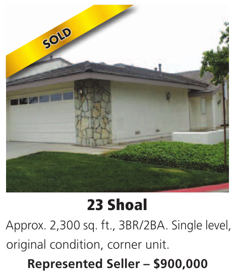 23 Shoal Approx. 2,300 sq. ft., 3BR/2BA. Single level, original condition, corner unit.