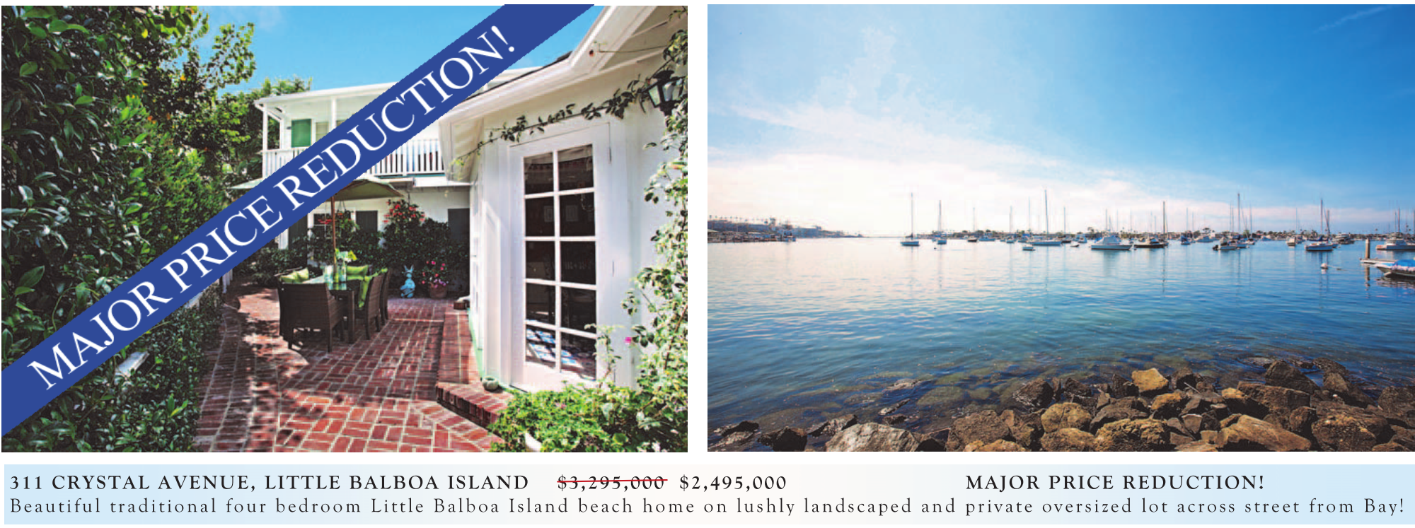 311 CRYSTAL AVENUE, LITTLE BALBOA ISLAND $3,295,000 $2,495,000 MAJOR PRICE REDUCTION! Beautiful traditional four bedroom Little Balboa Island beach home on lushly landscaped and private oversized lot across street from Bay!