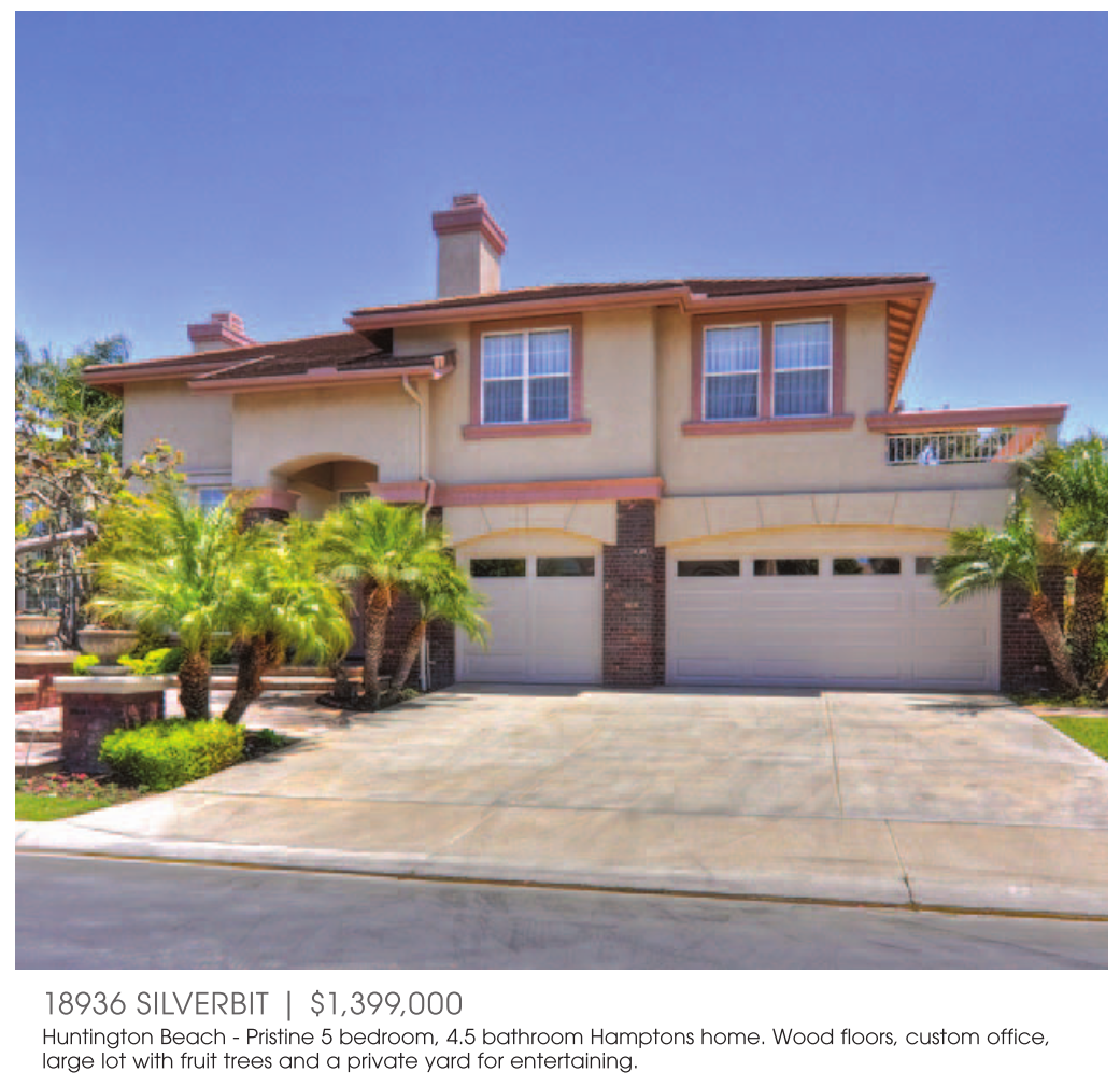 Huntington Beach - Pristine 5 bedroom, 4.5 bathroom Hamptons home. Wood floors, custom office, large lot with fruit trees and a private yard for entertaining.