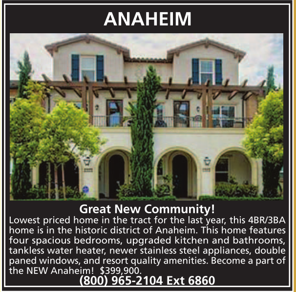 Lowest priced home in the tract for the last year, this 4BR/3BA home is in the historic district of Anaheim. This home features four spacious bedrooms, upgraded kitchen and bathrooms, tankless water heater, newer stainless steel appliances, double paned windows, and resort quality amenities. Become a part of the NEW Anaheim! $399,900.
