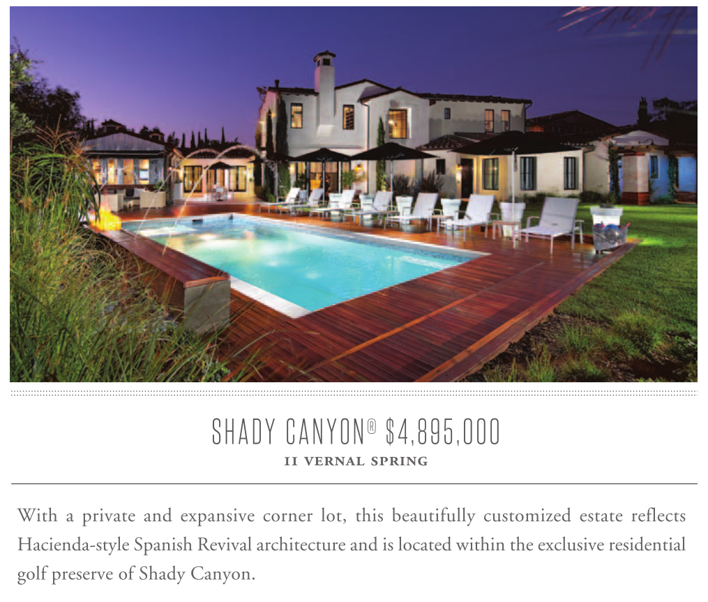 With a private and expansive corner lot, this beautifully customized estate reflects Hacienda-style Spanish Revival architecture and is located within the exclusive residential golf preserve of Shady Canyon.