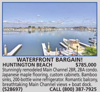 HUNTINGTON BEACH $785,000 Stunningly remodeled Main Channel 2BR, 2BA condo. Japanese maple flooring, custom cabinets. Bamboo sinks, 200-bottle wine refrigerator. Romantic balcony, breathtaking Main Channel views + boat dock. (528697) CALL (800) 387-7925