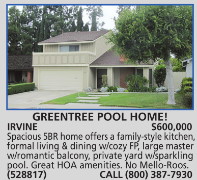 w/romantic balcony, private yard w/sparkling pool. Great HOA amenities. No Mello-Roos. (528817) CALL (800) 387-7930