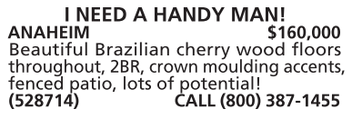 ANAHEIM $160,000 Beautiful Brazilian cherry wood floors throughout, 2BR, crown moulding accents, fenced patio, lots of potential! (528714) CALL (800) 387-1455