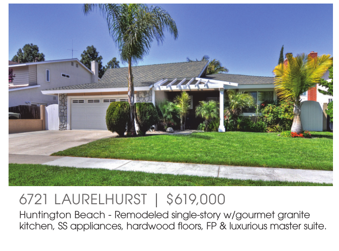 Huntington Beach - Remodeled single-story w/gourmet granite kitchen, SS appliances, hardwood floors, FP & luxurious master suite.