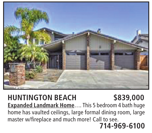 HUNTINGTON BEACH $839,000 Expanded Landmark Home…. This 5 bedroom 4 bath huge home has vaulted ceilings, large formal dining room, large master w/fireplace and much more! Call to see.