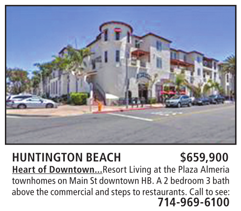 HUNTINGTON BEACH $659,900 Heart of Downtown...Resort Living at the Plaza Almeria townhomes on Main St downtown HB. A 2 bedroom 3 bath above the commercial and steps to restaurants. Call to see: