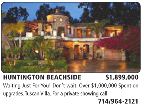 HUNTINGTON BEACHSIDE $1,899,000 Waiting Just For You! Don’t wait. Over $1,000,000 Spent on upgrades. Tuscan Villa. For a private showing call 714/964-2121